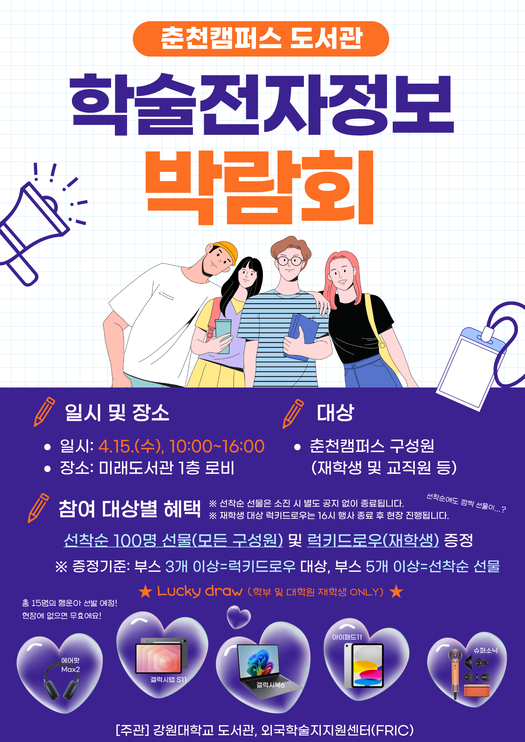 [도서관] 2026년도 전자정보박람회 안내(4/15, 재학생 럭키드로우 : 노트북 등)